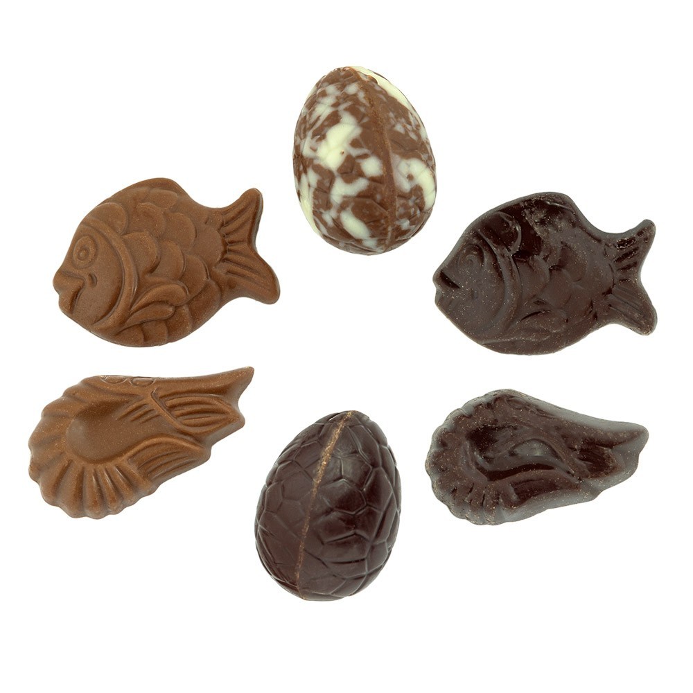 Douceurs incontournables des fêtes de Pâques, ces fritures sont composés de très bons chocolats.Ce sachet regorge de petits sujets classiques poisson, crevette... mais aussi de plus originaux cochon, grenouille...